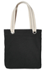 The Allie Tote is perfect for shopping, commuting or sightseeing. Contrast lining, striped handles and large metal grommets add a touch of whimsy to this casual tote.
